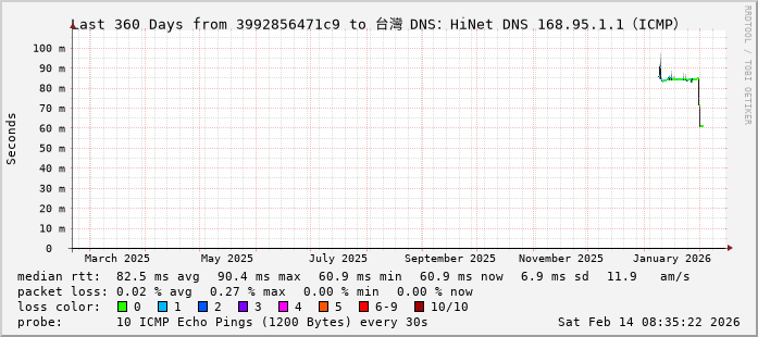 台灣 DNS:HiNet DNS 168.95.1.1(ICMP)