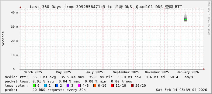 台灣 DNS:Quad101 DNS 查詢 RTT