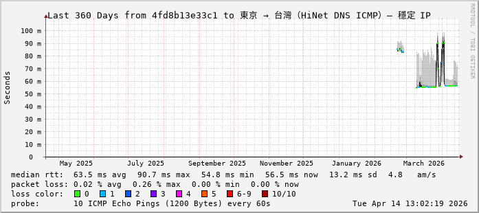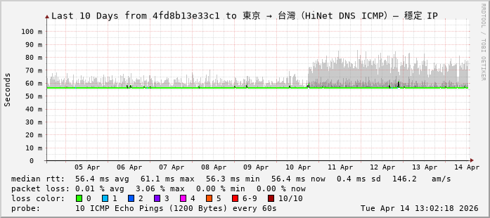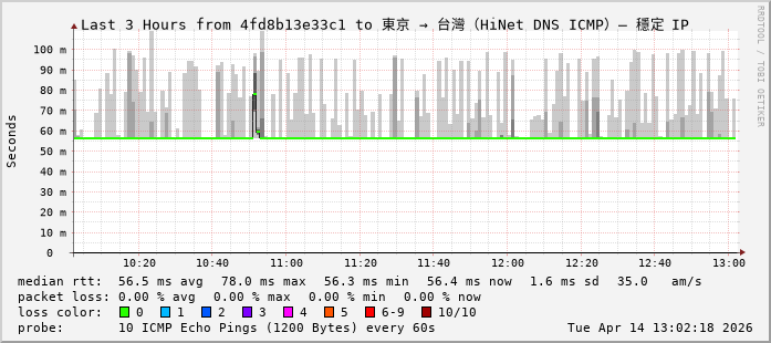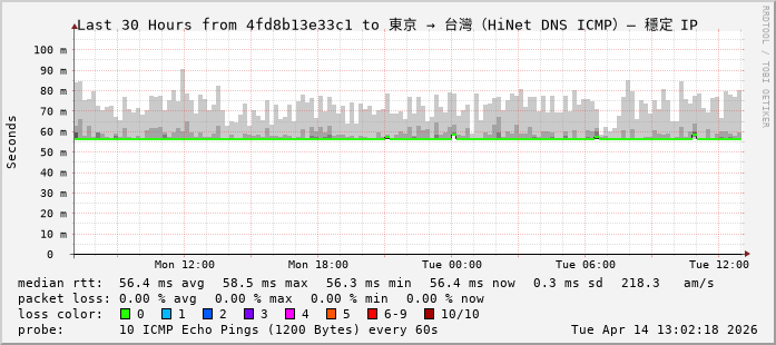 東京 → 台灣(HiNet DNS ICMP)— 穩定 IP