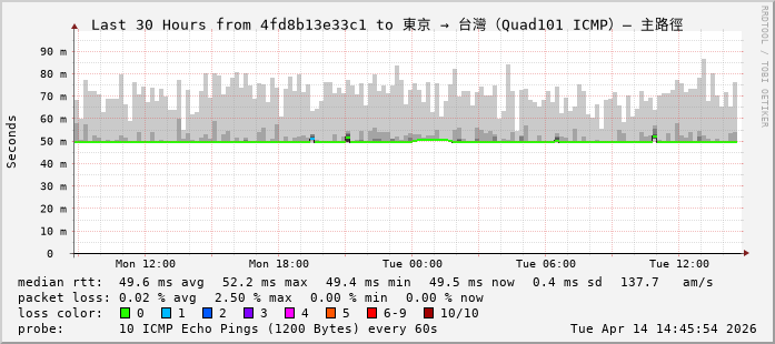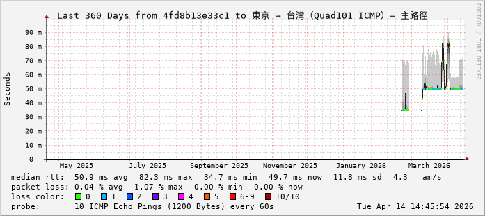 東京 → 台灣(Quad101 ICMP)— 主路徑